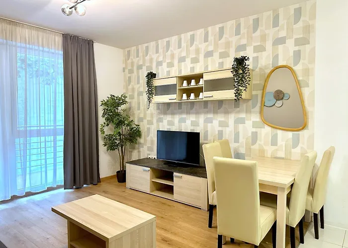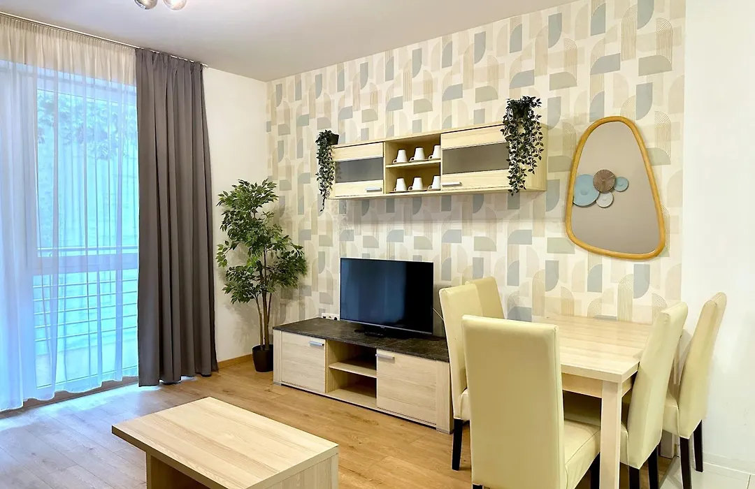 Az apartman vendégei számára rendelkezésre áll erkély, nappali és konyha klímaberendezéssel.